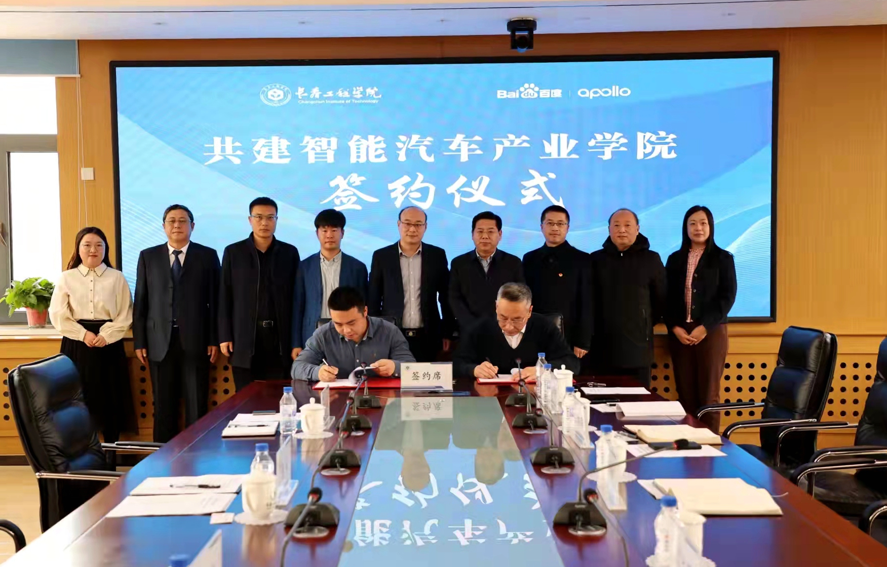 11月30日,我校与北京百度智行科技有限公司联合成立智能汽车产业学院,签约仪式在办公楼343会议室举行。北京百度智行科技有限公司东北三省总经理董斌、吉林省总经理张烁、东北三省教育行业代表丁小珑、智能网联高级解决方案专家张可欣,我校校长陈权、副校长窦立军参加仪式。