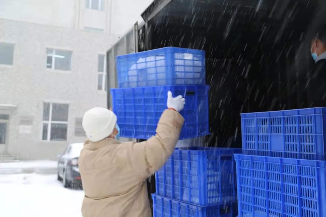 志愿者们不畏艰险、不辞辛劳,每天为隔离封寝的学生们送上热腾腾的饭菜。笨重的防护衣,雪地上蹒跚的脚步,都阻止不了他们成为温暖的“大白”。