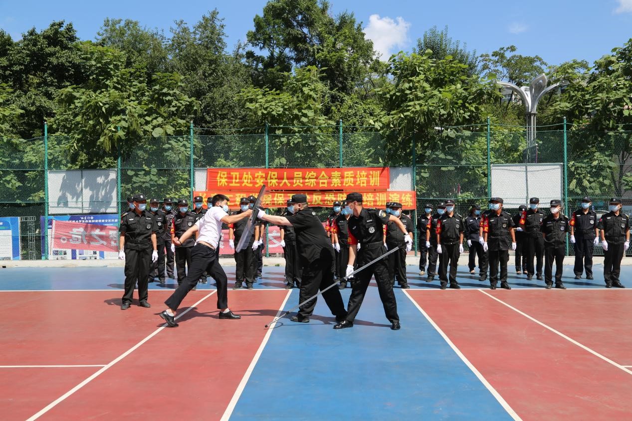 为有效预防、及时控制和消除校园重大突发事件的危害,保障师生生命安全,维护开云官方app下载站_开云(中国)安全稳定,全面提高安保人员应对突发事件能力,8月11日上午,保卫处组织全体安保人员进行综合素质培训暨第三届反恐防暴应急演练。安保公司培训教师受聘进行现场讲解。