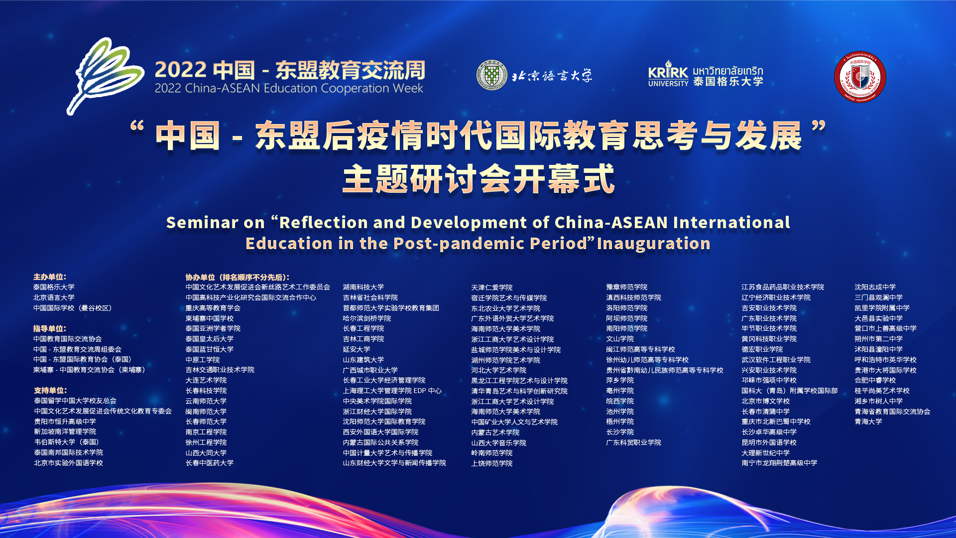 12月3日至4日,中国-东盟教育交流周“后疫情时代国际教育思考与发展”主题研讨会在泰国曼谷举办。此次研讨会在中国教育国际交流协会、中国东盟国际教育协会等单位的指导下,由泰国格乐大学、泰国-中国国际开云官方app下载站_开云(中国)和北京语言大学三校联合主办,旨在增进中国与东盟友谊,开展教育合作,加强区域间文化交流。我校作为研讨会协办单位之一线上参加活动。校长陈权、副校长王朝勇参加了会议。