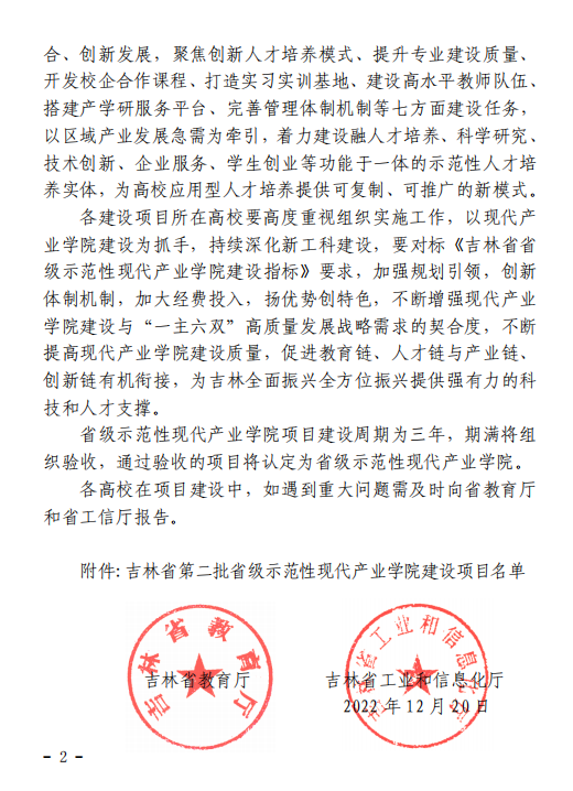 开云官方app下载站_开云(中国)将按照吉林省示范性现代产业学院建设指标要求,进一步深化人才培养模式改革,促进教育链、人才链与产业链、创新链有机衔接,为区域经济和行业发展提供智力支持和人才保障。
