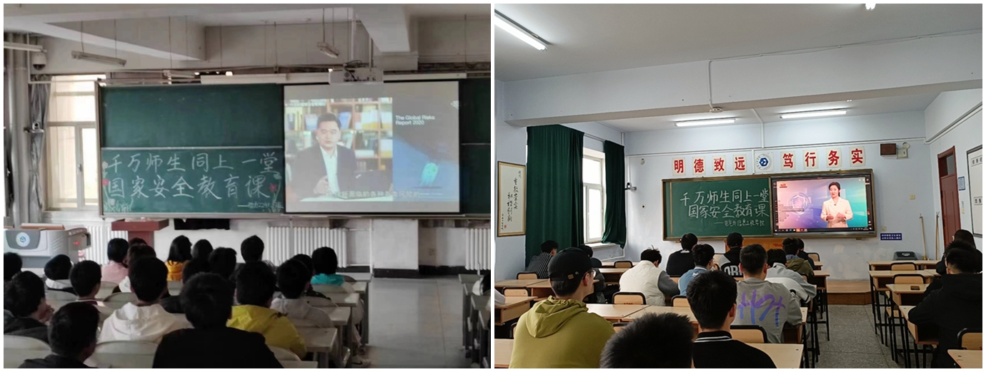 各教学单位组织开展国家安全教育主题班会,通过观看国家安全教育宣传片、参加全民国家安全教育日专题知识答题活动、收看以“千万师生同上一堂国家安全教育课”为主题的公开课等活动,帮助学生了解相关法律中关于危害国家安全犯罪的法条内容,引导大家树立坚定的国家利益至上观念,增强自觉维护国家安全意识和法治意识,提高维护国家安全的能力。