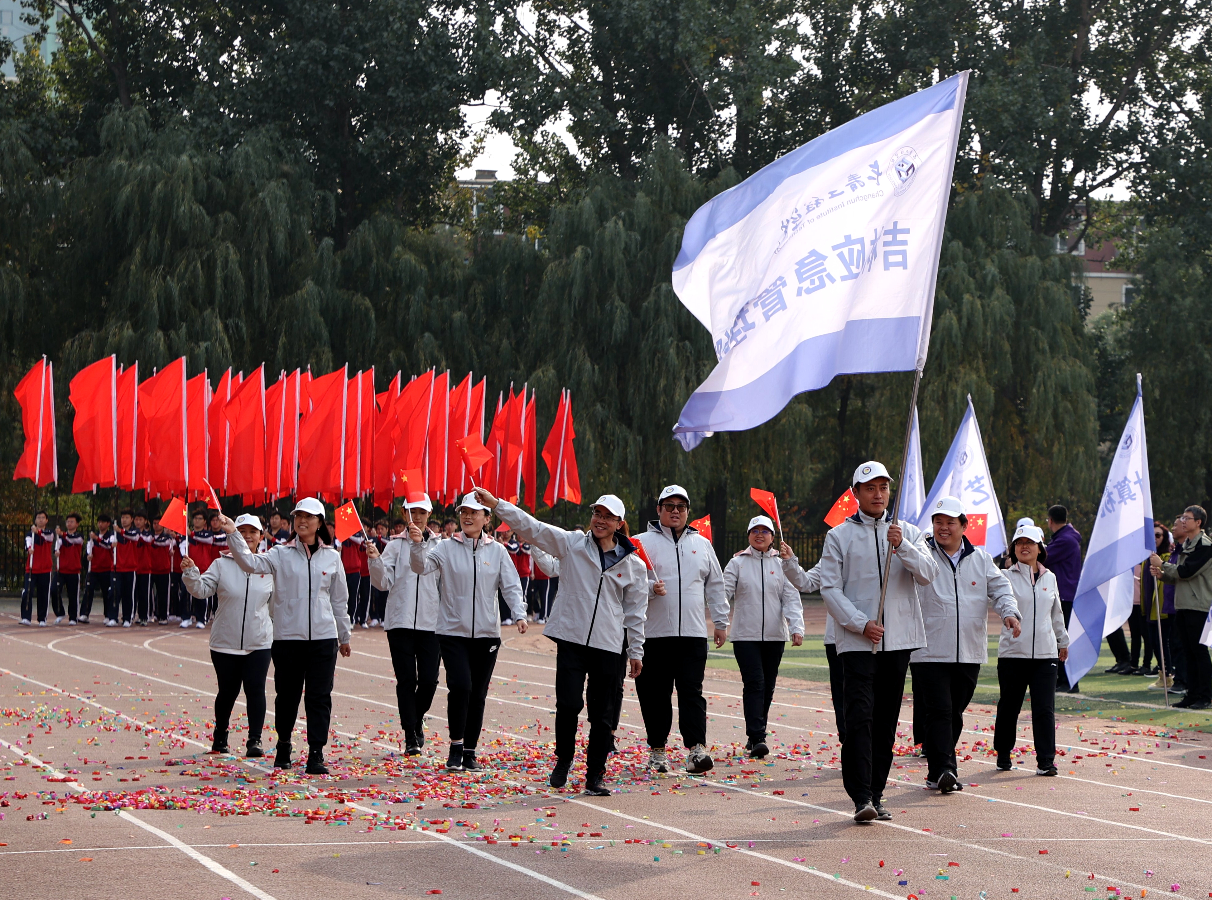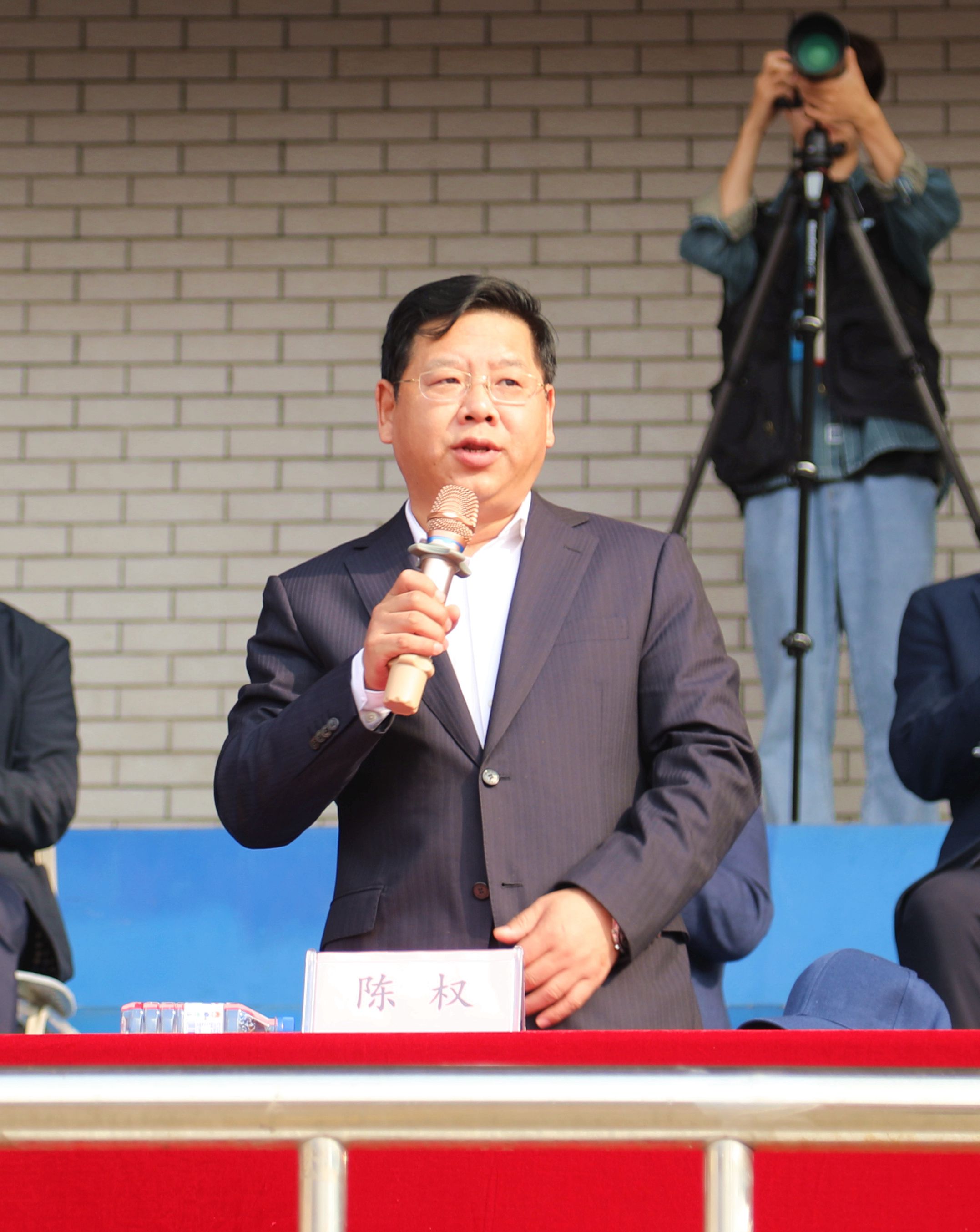 校长陈权宣布开云官方app下载站_开云(中国)第四届教职工趣味运动会开幕。运动场上鼓声阵阵,队旗挥舞。