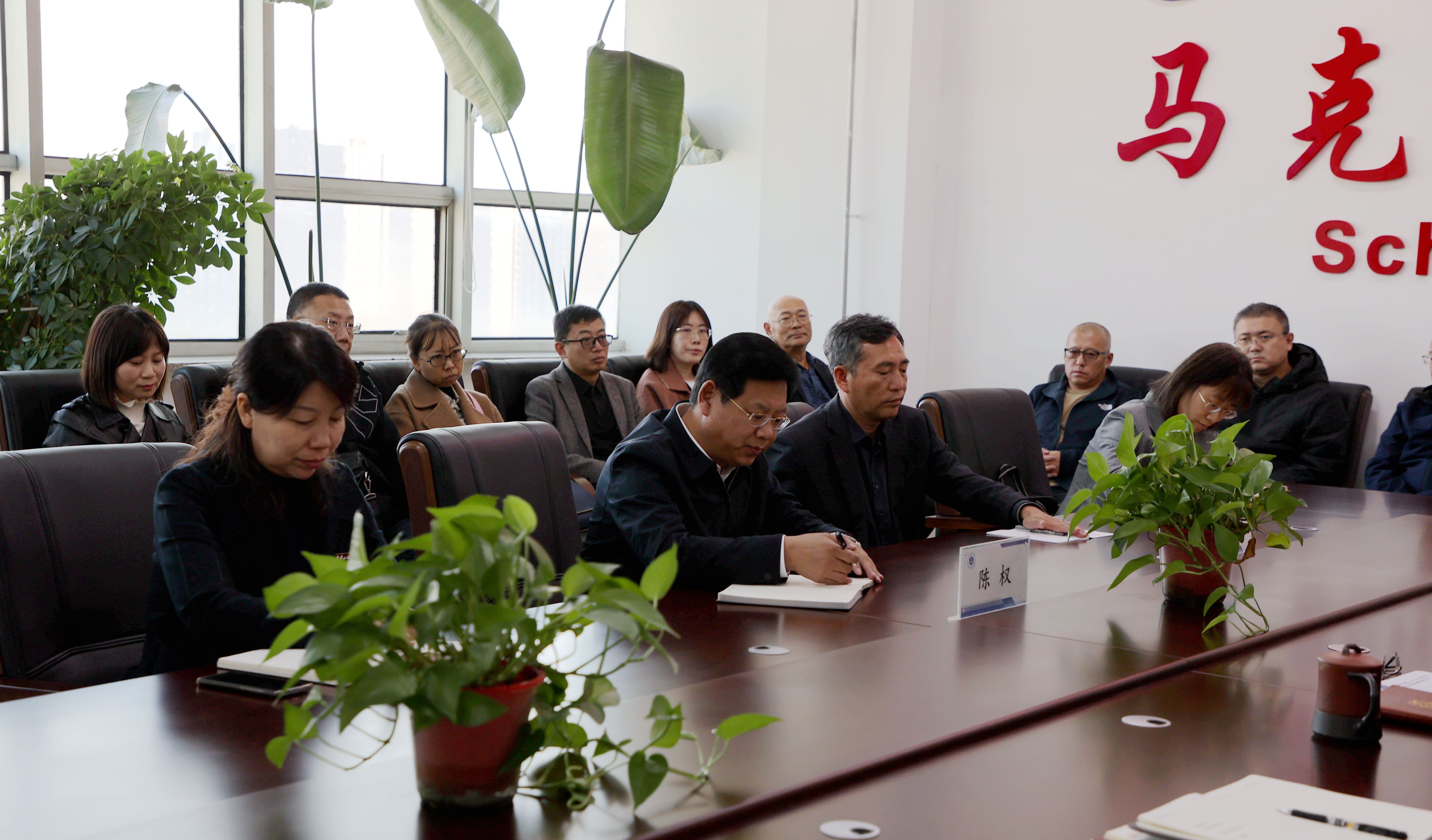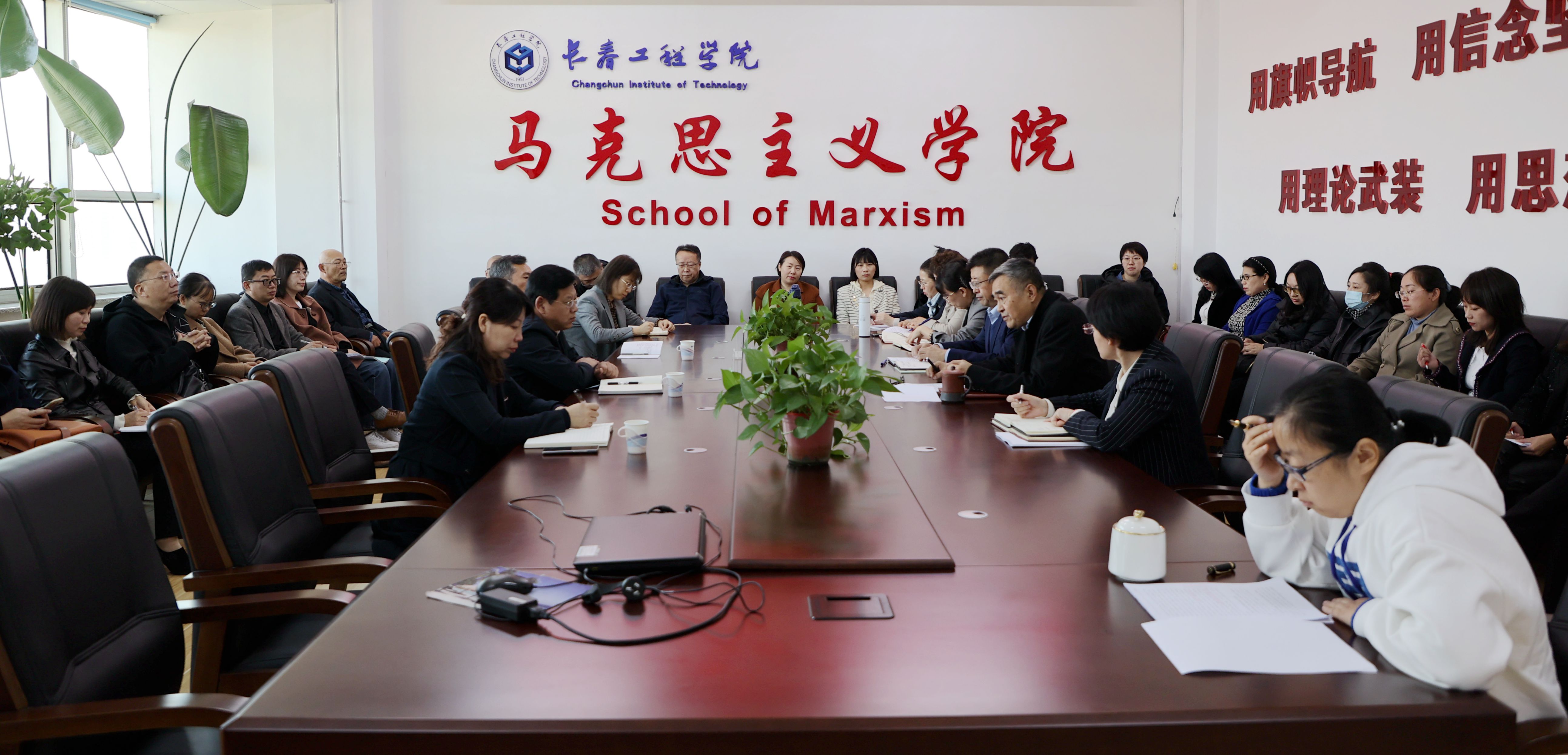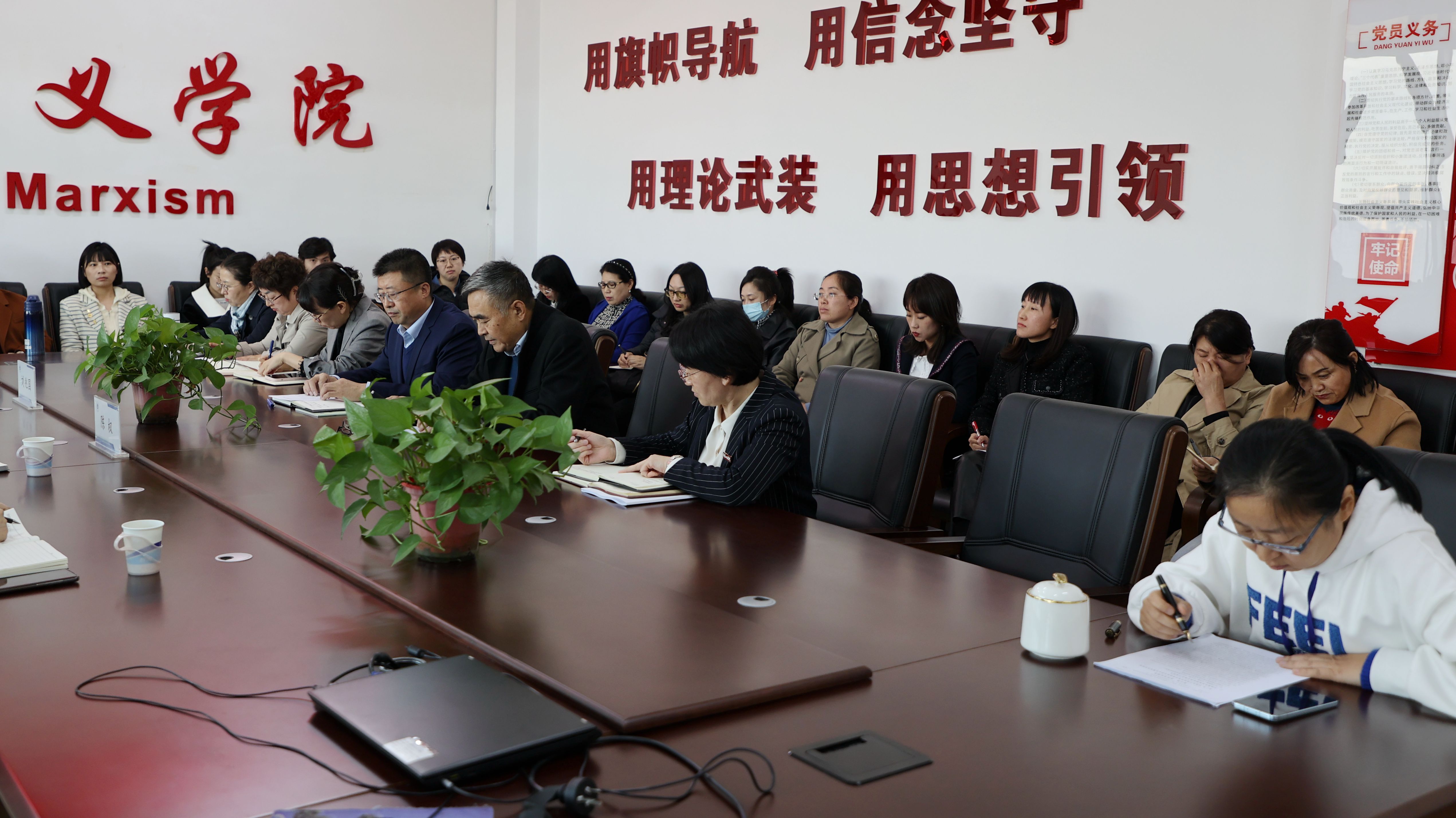 近日,陈权校长在刘兆国副书记的陪同下来到马克思主义学院召开现场办公会。