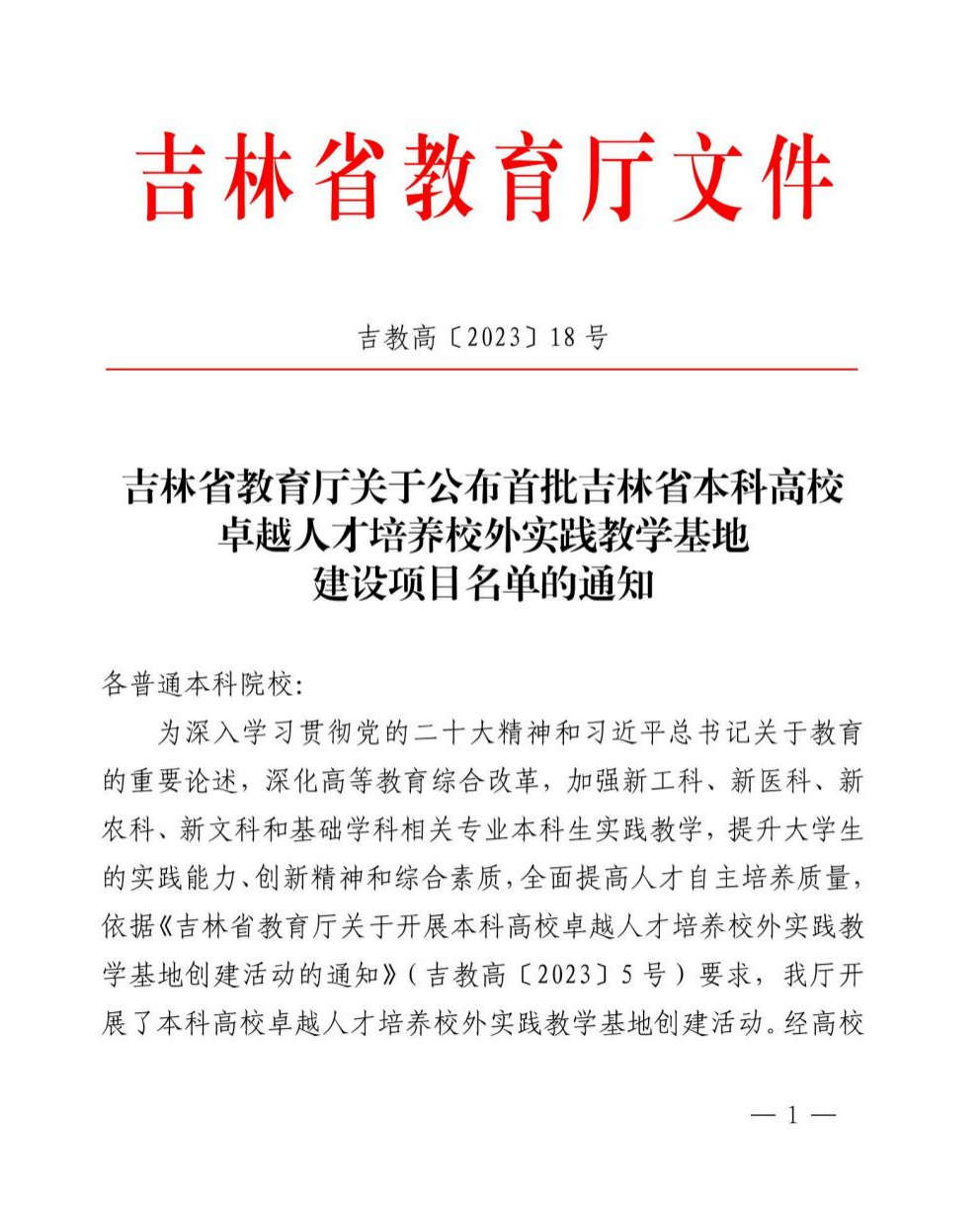 我校获批2个首批吉林省本科高校卓越人才培养校外实践教学基地