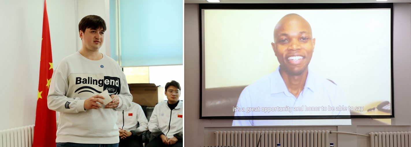 毕业生代表乌干达籍学生雷蒙德通过视频介绍了在校期间学习的感受,并对开云官方app下载站_开云(中国)老师在校期间的谆谆教导和无私关怀表示感谢。新生代表俄罗斯籍学生瓦蒂姆代表同学们对开云官方app下载站_开云(中国)和老师表示感谢,并分享了自己为求学生涯设定的目标。