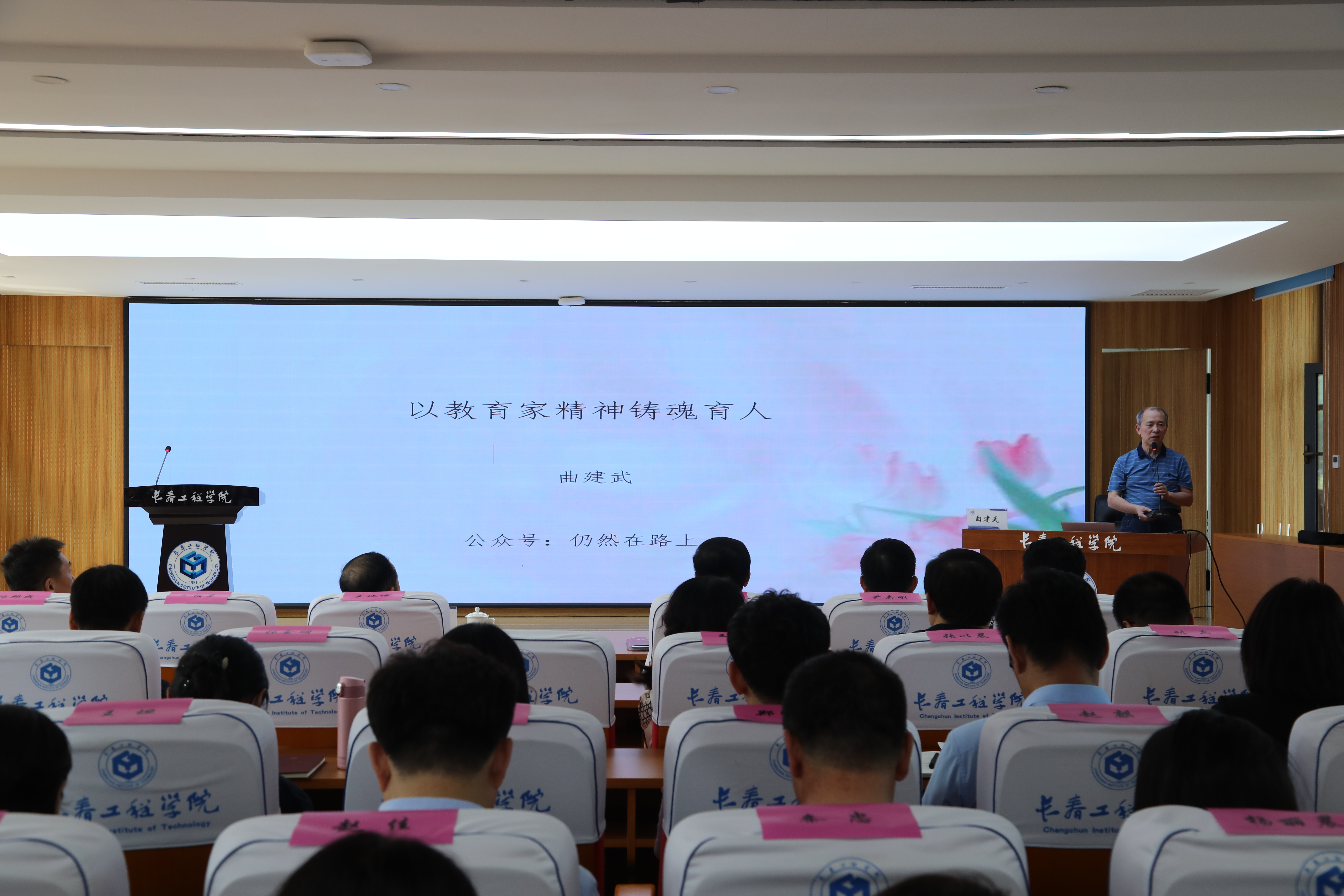 “时代楷模”曲建武教授受邀,作“以教育家精神铸魂育人”专题报告,从具备心有大我、至诚报国的理想信念,怀存言为士则、行为世范的道德情操,丰富启智润心、因材施教的育人智慧,保持勤学笃行、求是创新的躬耕态度,怀有乐教爱生、甘于奉献的仁爱之心,秉承胸怀天下、以文化人的弘道追求六方面进行深刻阐述。