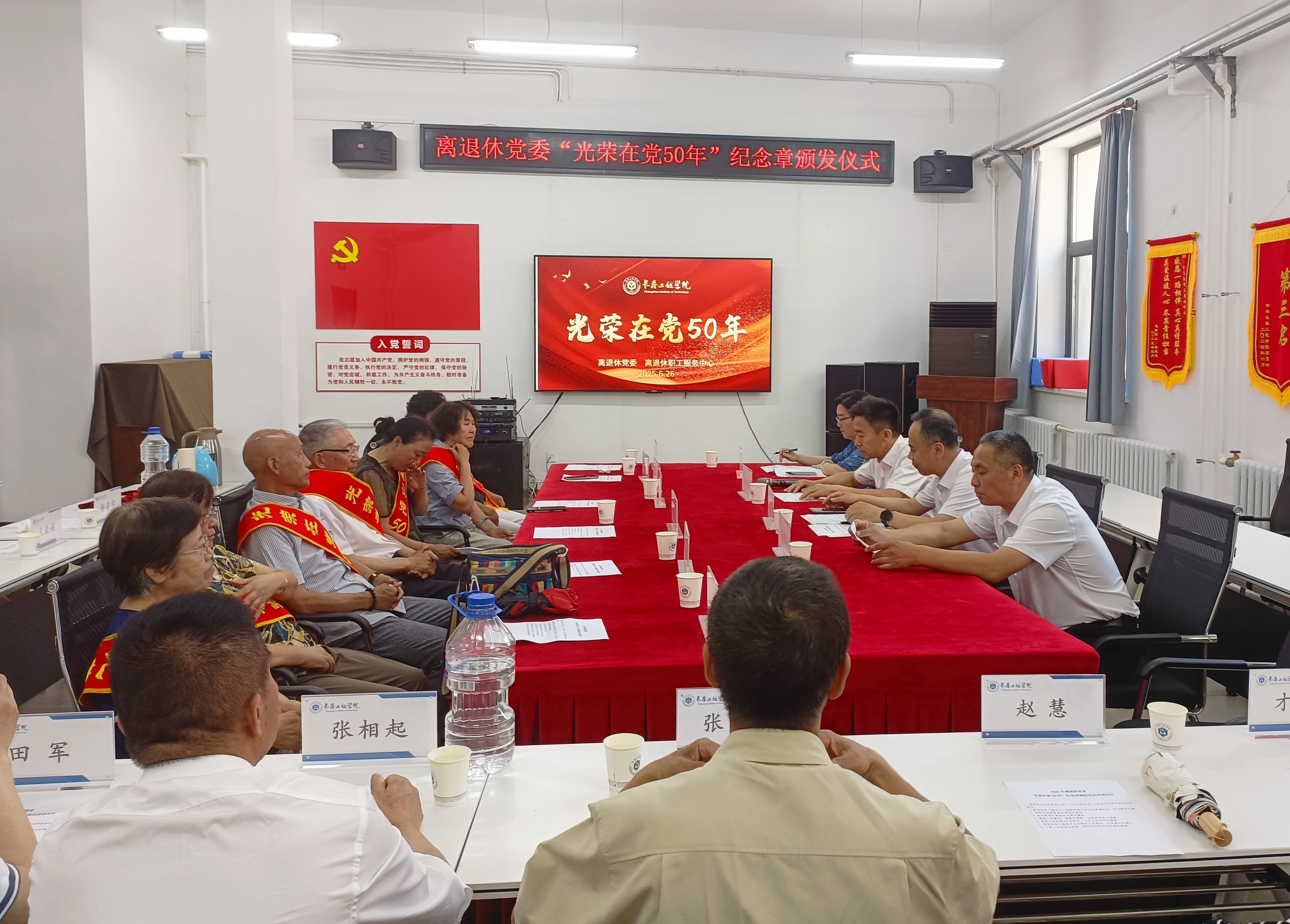 在中国共产党成立104周年来临之际,6月26日,开云官方app下载站_开云(中国)“光荣在党50年”纪念章颁发仪式在离退休职工服务中心会议室举行。荣获纪念章的老党员,开云官方app下载站_开云(中国)相关部门负责人,离退休党委各党支部书记参加会议。