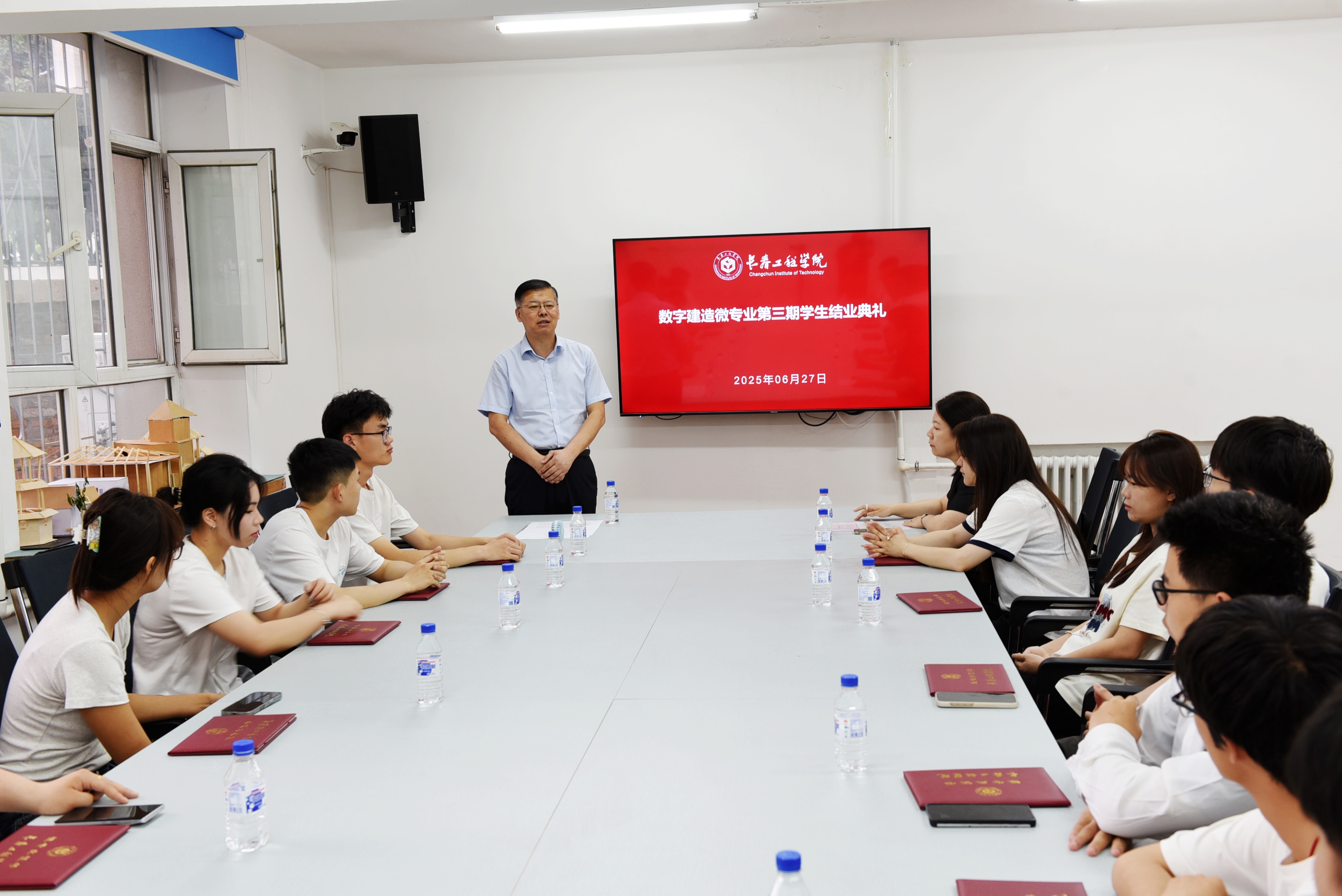 典礼上宣读了《关于准予18名数字建造微专业学生结业的决定》。BIM技术产业学院院长为第三期结业学生颁发了微专业证书。