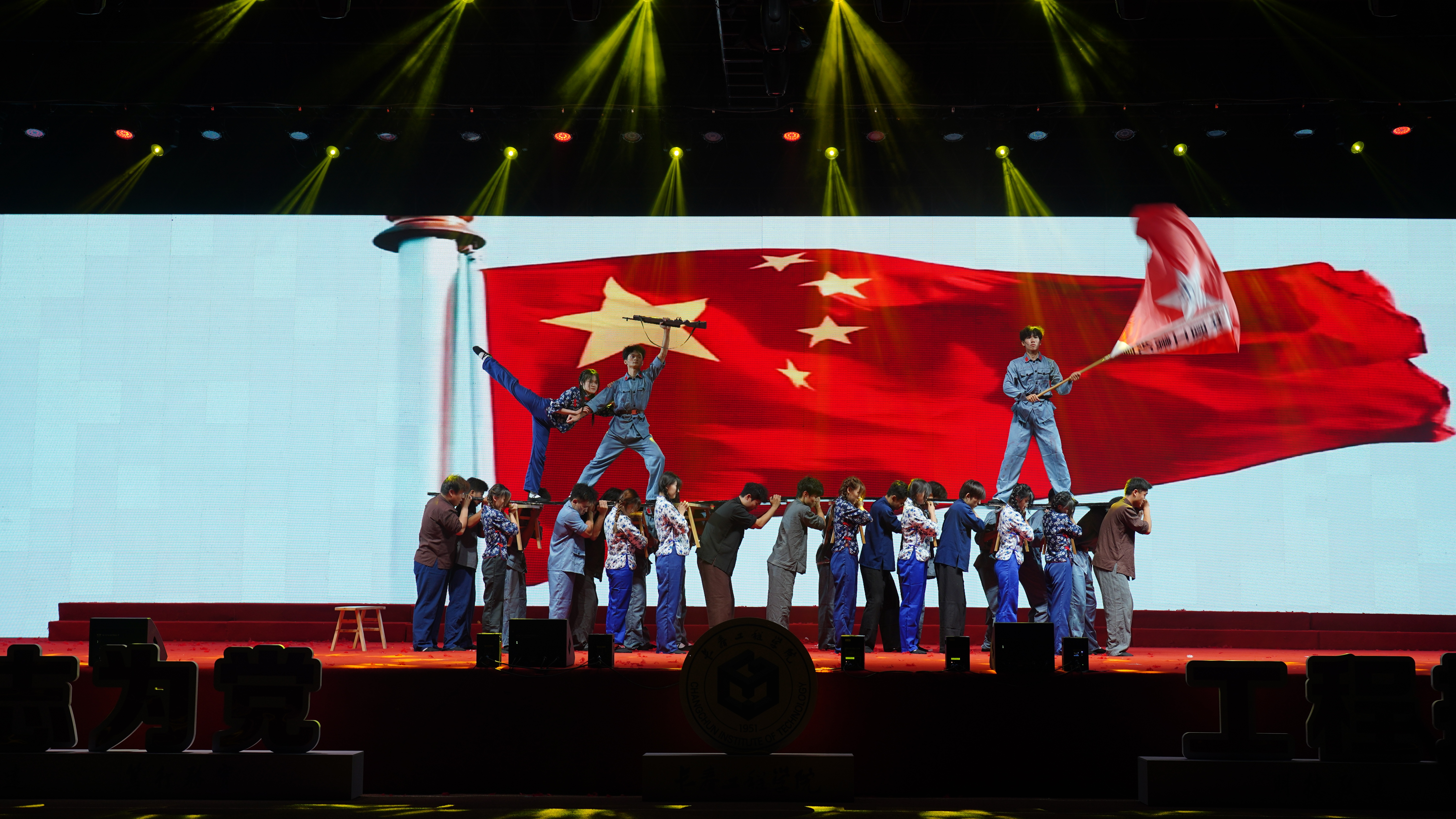 第二篇章为垚垚厚土,工程报国。红色现代舞《烽火岁月》用铿锵有力的舞姿再现了革命年代的奋斗精神;学生朗诵《青春的选择》以真挚的情感诠释了新时代青年的责任与担当;歌舞《奋斗的中国》通过激昂的旋律和舞步,展现了祖国发展的壮丽画卷。