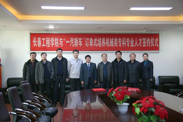 11月30日上午,“一汽轿车”人力资源部刘殿伟部长、人力开发科宁玉伟科长来我校参加订单式培养机械类专科专业人才签约仪式。