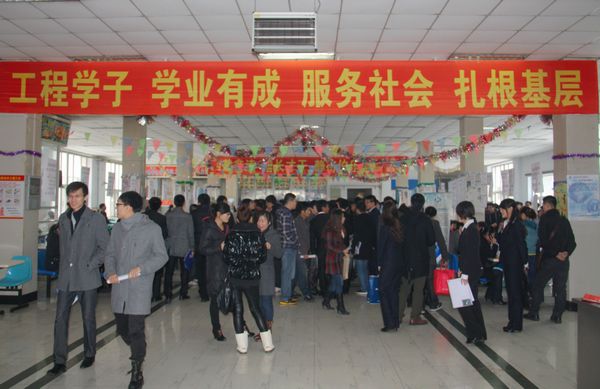 11月17日,我校2012届毕业生就业“双选会”在湖西校区食堂隆重举行。北京能源投资公司、中国水利水电第十一工程局有限公司、中国第十七冶金建设有限公司等来自全国各地的近130家用人单位来到我校选聘毕业生,为我校学生提供了近千个就业岗位,近500名毕业生与用人单位达成就业意向和签订就业协议。虽然屋外下着凄冷的冬雨,却丝毫未影响招聘会现场用人单位和求职大学生双方高涨的热情,会场里人头攒动,人声鼎沸。