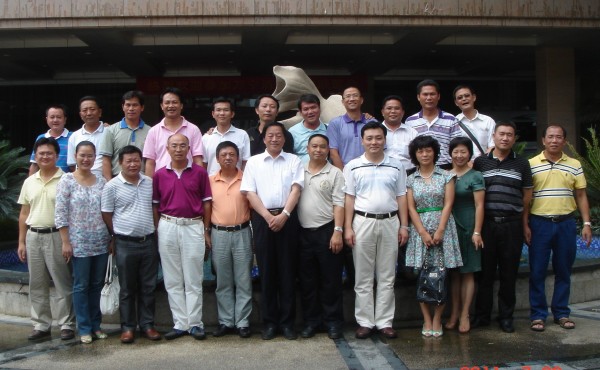 党委副书记吴占军(左六)与海南校友会会长刘孟冬(前排左五)及校友代表合影留念