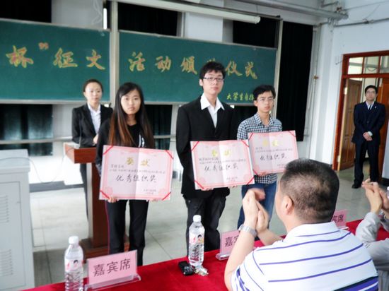 “开拓杯”建党九十周年征文活动由校大学生自律委员会主办,得到了广大师生的大力支持和积极参与。征文活动共收到近486份感情真挚,内容丰富的征文作品。经评委的公平、公正、细致的评选,共评出一等奖2名,二等奖6名,三等奖10名,优秀奖16名;能源动力工程学院、管理学院、理学院获优秀组织奖。在颁奖仪式中,获奖同学代表发表了获奖感言,评委代表对此次活动进行了总结,并给予参赛人员鼓励和充分肯定。