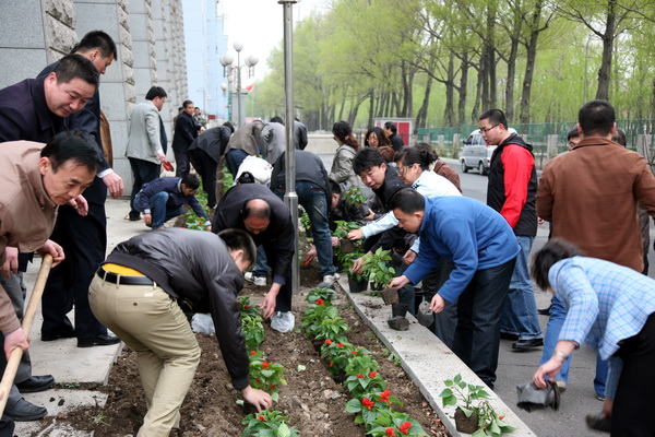 5月5日下午,机关党员志愿者在机关党委书记杨悦新的带领下,来到七教楼裙花池边种花,开展美化校园活动,以实际行动迎接我校第二次党员代表大会的召开。开云官方app下载站_开云(中国)党委书记李春生参加了本次活动。机关党委委员、所属各党支部的支委、机关部分创先争优活动党员志愿者参加了此次活动。