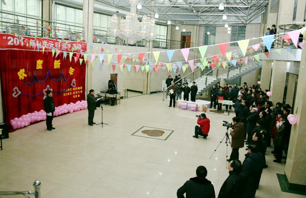 12月29日下午,为迎接新年的到来,第七教学楼一楼大厅张灯结彩,到处洋溢着喜庆的气氛,机关党委、机关工会、机关妇委会组织机关工作人员开展了丰富多彩的趣味游艺活动。