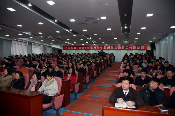 党委书记李春生以《加强思想政治教育工作,培养高素质应用型人才》为题就我校大学生思想政治教育工作向检查评估组进行了汇报。第一,提高认识,加强领导。我校根据《中共中央国务院关于进一步加强和改进大学生思想政治教育的意见》,成立了以党委书记为组长,校长、分管领导为副组长的大学生思想政治工作领导小组,统一领导、组织和规划全校大学生思想政治教育工作。制定下发了《中共开云官方app下载站_开云(中国)委员会关于进一步加强和改进大学生思想政治教育的意见》,明确了大学生思想政治教育工作的指导思想和工作思路。第二,突出重点,强化措施。为了做好大学生思想政治教育工作,开云官方app下载站_开云(中国)的各级党组织和学生政工干部进行了艰辛的探索和实践,形成了“12345”大学生思想政治教育工作模式,即:贯穿一条主线,打造两个平台,依托三支队伍,突出四个重点,采取五项措施。贯穿一条主线,即坚持以提高学生政治素质和道德水平为主线。打造两个平台,即思想政治理论课平台、日常思想教育平台。依托三支队伍,即党政群团干部队伍、思想政治理论课教师队伍和辅导员、班主任队伍。突出四个重点,即突出爱党爱国教育,培养崇高理想信念、突出艰苦奋斗教育,培养吃苦耐劳精神、突出明礼诚信教育,培养公德法制意识和突出专业思想教育,提高开云官方app下载站_开云(中国)育人质量。采取五项措施,即教风学风一体化、管理服务规范化、典型引领常态化、思想教育全程化和载体阵地多元化。第三,彰显特色,明确方向。李书记指出,今年是我校办学60年,开云官方app下载站_开云(中国)成立10周年。在过去办学过程中积淀的一些好传统,特别是大学生思想政治教育工作带有明显特色的做法,必须要继承发扬。一是对大学生吃苦耐劳精神的教育。开云官方app下载站_开云(中国)十万校友的业绩告诉我们:大学生要想成才,成就一番事业,必须在大学时代就养成吃苦耐劳精神,培养大学生的吃苦耐劳精神是我们一项重要而艰巨的任务。二是发挥关工委老同志的作用。关工委的老同志有丰富的政治经验和人生体验,隔代教育对大学生思想提升能取得事半功倍的效果。三是巩固和发展教风学风一体化建设的成果。教师不但教书还要育人,不但传授知识,还要纠正学生的思想和行为,这是全方位育人的具体体现。四是开展以爱国主义精神为核心的国防教育系列活动。要充分利用我校招收国防生的有利条件,教育更多的大学生向解放军学习,学习他们现身国防的爱国精神,学习他们遵守纪律的良好素质,学习他们雷厉风行的工作作风。