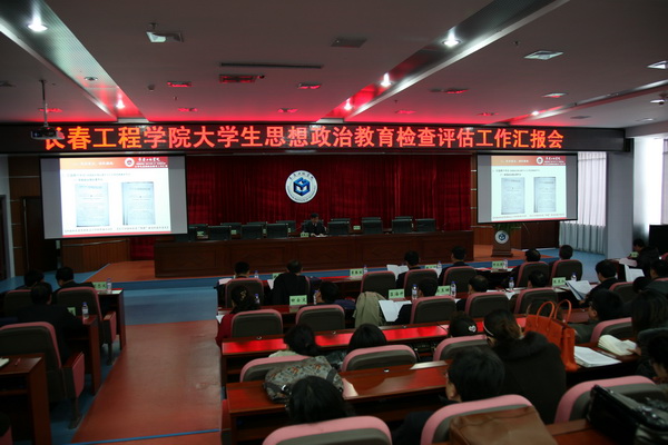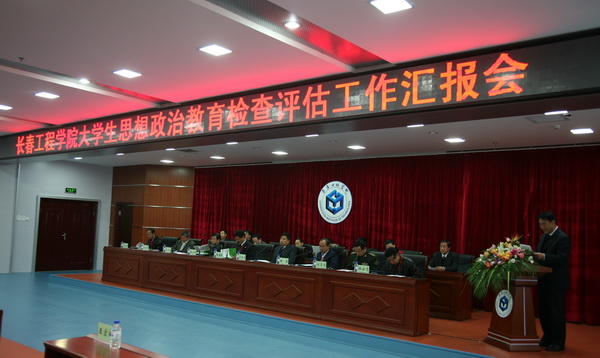 11月12日9:00,我校大学生思想政治教育工作检查评估汇报会在逸夫图书馆报告厅隆重举行。吉林省检查评估工作组全体成员、我校党政领导、思想政治教育工作领导小组成员单位负责人、学工部、人文社科部和相关职能部门负责人等参加了汇报会。院长韩立强致欢迎辞;党委书记李春生就我校大学生思想政治教育工作进行了汇报。汇报会由我校党委副书记吴占军主持。