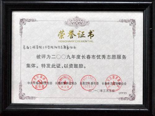 近日,我校土木工程学院赴敦化市雁鸣湖镇社会实践服务团队被中共吉林省委宣传部、省精神文明建设指导委员会办公室、省教育厅、共青团吉林省委、吉林省学生联合会五部门评为2009年度吉林省大中专学生志愿者暑期“三下乡”社会实践活动优秀团队;土木工程学院分团委书记宫国靖被评为先进个人。土木工程学院“阳光青年志愿者协会”被评为2009年度长春市“优秀志愿服务集体”。