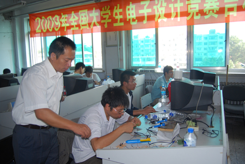 9月2至5日,我校组织学生参加的2009年全国大学生电子设计竞赛在电信学院举行,18组54名同学参加了竞赛。竞赛采用“半封闭、相对集中”的组织方式进行。竞赛期间学生可以查阅有关纸介质或网络技术资料,队内学生可以集体商讨设计思路,确定设计方案,分工负责,团结协作,以参赛队为基本单位独立完成竞赛任务。我校在上学期就积极进行组织、选拔、培训参赛学生及竞赛相关准备工作,来自电信学院和机电学院的18名指导教师和54名参赛同学利用课余时间及暑假进行培训和精心准备,现在比赛正在紧张进行中,师生们对竞赛充满信心。大学生电子设计竞赛每年的9月份举办,我校自2000年开始参加了历届全国大学生电子设计竞赛,并取得较好的成绩。