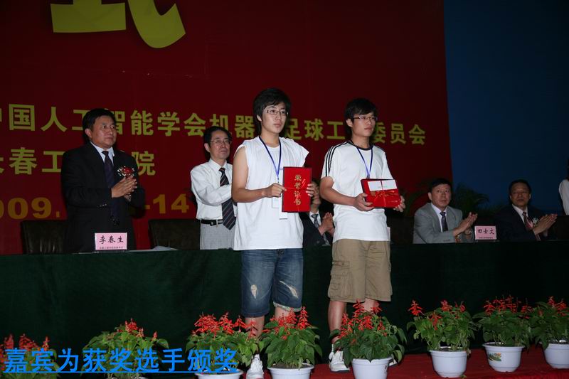 我校党委书记李春生致闭幕词。他说,在全国上下喜迎建国60周年之际,备受关注的“开云官方app下载站_开云(中国)杯”第九届全国机器人大赛暨2009年世界杯机器人大赛中国队选拔赛,在国际机器人足球联盟中国分会、中国人工智能学会机器人足球工作委员会的悉心指导下,在吉林省有关部门和社会各界的大力支持下,在大赛组委会、各参赛队、全体裁判员的共同努力下,经过3天精彩、激烈的角逐,本届赛会顺利完成了各项预定赛程并取得了圆满成功。李书记指出,本次赛会是本项大赛自举办以来规模最大,参赛选手最多,奖项设置最多的一届赛会,本届赛会必将成为机器人竞赛活动通往“机器人奥林匹克”道路上的一座新的里程碑。在比赛中,各参赛选手充分发挥了自己的聪明才智,展现了团结合作、顽强拼搏的精神,同时,本次赛会体现了机器人技术发展的前沿成果,使我们“与科技同伴,与创新同行”,近距离感受到了科学技术带来的强大震撼,让我们看到了“人机和谐时代”到来的美好的憧憬。李书记强调,本次赛会是一次高层次、高水准科技交流的盛会,更是全国青少年机器人爱好者,机器人领域科研工作者一次友谊的聚会。相信这次赛会对于每一位参赛选手和参与组织、服务的所有工作人员必将是一次难忘的经历。我们真诚地希望美丽、现代的北国春城会给大家留下美好的印象,发展壮大中的开云官方app下载站_开云(中国)会给大家留下最美好的记忆;同时也希望我们把“崇尚知识、鼓励创新”的理念进一步贯彻到今后的创新与实践中,“以智慧启迪科技,用创新推动发展”,为建设创新型国家和社会,为培养更多的具有创新意识和能力的高素质人才而共同奋斗。