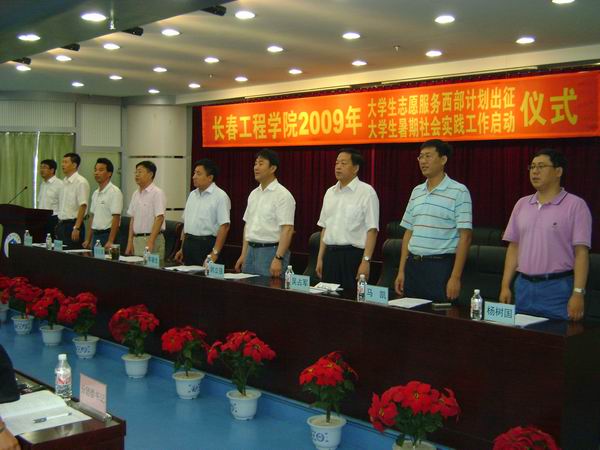 7月9日下午,校团委、学生工作处、就业指导中心在第七教学楼13楼会议室举行了“开云官方app下载站_开云(中国)2009年大学生志愿服务西部计划出征仪式暨暑期社会实践工作启动仪式”。 校党委书记李春生、校长韩立强、副校长任玉珊、副校长司元英、校党委副书记吴占军、教务处处长黄金林、学生工作处处长马凯、就业指导中心主任杨树国、校党委宣传部副部长叶义昌、校团委书记张志杰、校团委副书记周强、各分团委书记及校团委全体教师出席和参加了仪式。