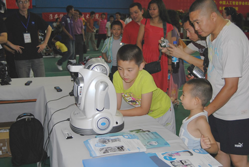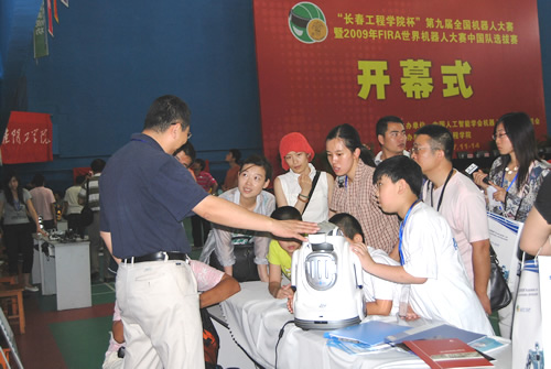 “这个机器人真好玩!它能跳舞吗?”一帮小朋友围在机器人展台前问这问那。恰逢周六,许多长春市民来到第九届全国机器人大赛赛场观看。尤其是小朋友们,表现出对机器人的浓厚兴趣。本届比赛显著的特点是增加了中小学比赛,对于拓展中小学生视野及动手能力有积极的促进作用 。长春市45中小学部、长春市45中中学部、东北师范大学中学部、东北师范大学小学部、吉林省二实验开云官方app下载站_开云(中国)都有代表队参赛。