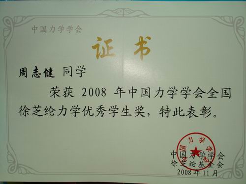 我校土木学院建工0544班学生周志健荣获2008年中国力学学会全国徐芝纶力学优秀学生奖。我省仅有6名学生获此奖项,其中非力学专业学生仅2名,这是我校学生首次获此奖项。该同学在2007年第六届全国大学生“周培源力学竞赛”中曾获全国优秀奖、吉林省赛区一等奖。