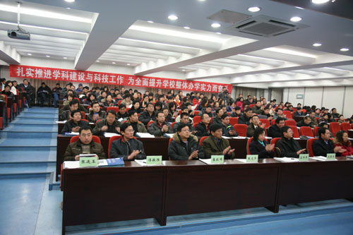 省教育厅刘勇兵副厅长作重要讲话。他对我校组建八年多来在学科建设、科技工作上取得的成绩给予了充分肯定。针对我校学科建设与科技工作,结合我校正在进行的学习实践科学发展观活动,刘副厅长指出:第一要认清形势,抢抓科技发展的新机遇。第二要充分认识学科建设的重大意义,正确处理好教学工作、学科建设、科研工作三者之间的关系。第三要加强“三重”(重点高校、重点学科、重点实验室)建设,扎实有序地推进学科建设。一是抓完善学科布局;二是抓提高学术水平和人才培养能力;三是抓队伍建设,特别是高水平队伍建设;四是加大投入,优化学术氛围。第四要加强产学研合作,大力促进科技成果转化。第五要大力推进机制和体制的改革与创新。