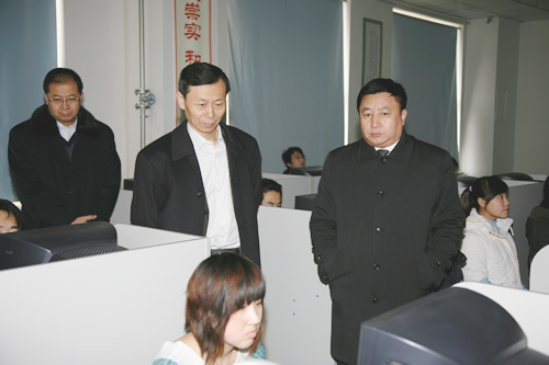 在工程训练中心,陈晓光副省长一行实地考察了电力系统仿真中心、电工实验室、电子实验室、机械FMS实验室、GE Fanuc自动化系统集成实验室、机械类学生创新活动室和金工实训车间。他边走边看,向有关人员询问实验设备在人才培养、科学研究中的利用情况,并叮嘱随行人员尽量不要影响学生上课、实验。